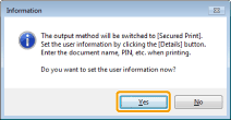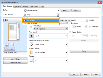 2. Select [Secured Print] from [Output Method].