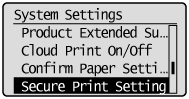 3. Select <Secure Print Settings> using [