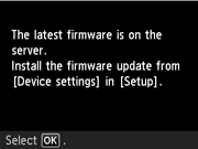 When the printer is connected to the Internet and if the latest firmware is available on the server, the printer will give the following message: