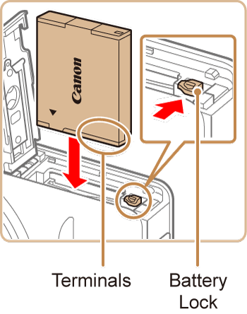 If you insert the battery facing the wrong way, it cannot be locked into the correct position. Always confirm that the battery is facing the right way and locks when inserted.