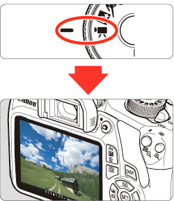 >.The reflex mirror will make a sound, then the image will appear on the LCD monitor.