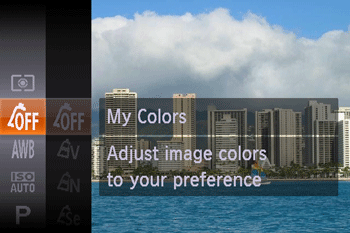 For a list of the shooting modes in which [My Colors] can be set, please refer to the table below.