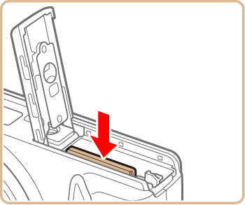• Make sure the memory card is facing the right way when you insert it. Inserting memory cards facing the wrong way may damage the camera.