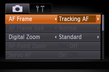 ]) tab, and then choose the [Tracking AF].