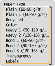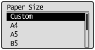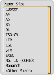 - You can set the machine to display only frequently used paper sizes in the selection screen.