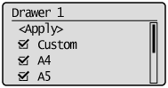 Uncheckmarked paper sizes are displayed in the <Other Sizes> screen.