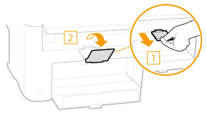 - The paper guides at the rear edge of the paper will be extended. Open the dust cover extension, then lower the dust cover.