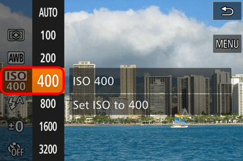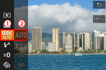 touch the icon to display the [ISO speed] settings.* If the default settings have not been changed, [ ISO AUTO ] (