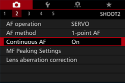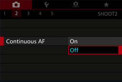The procedure for setting [Continuous AF] to [Disable] is explained below.