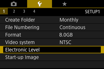 - If the electronic level is not displayed in step 1, press the [MENU] button and check the setting in [