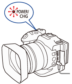 - If the camcorder was on, the green POWER/CHG indicator will go out when you turn off the camcorder. After a moment, the POWER/CHG indicator will turn on in red (battery pack charging).