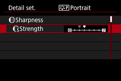 : Sharpness | : Strength | 0 : Less sharp outline | 7 : Sharp outline |