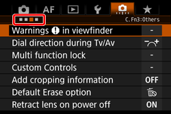 : Clear all Custom Func. (C.Fn)].| Function | ![]() | ![]() | ![]() | ![]() | ![]() | ![]() | ![]() | ![]() | ![]() | ![]() | ||