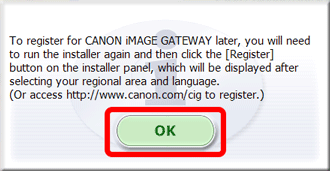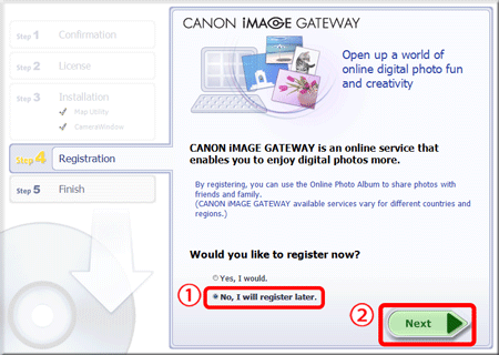 (To register in CANON iMAGE GATEWAY, select [Yes, I would] and complete the registration procedure.)