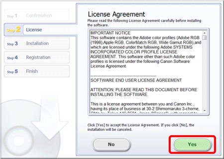 9. The following screen will appear. Click [Yes] after reading the content carefully.