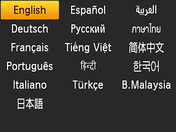 ] buttons to select a language, and then press the [