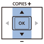 ] buttons to specify the number of prints. - To increase or decrease the quantity by five copies, hold down the [
