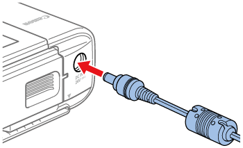- Insert the adapter plug fully into the power inlet on SELPHY.