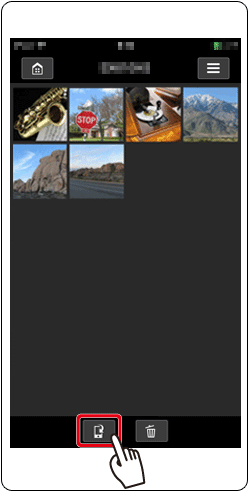 • When the camera is connected to the smartphone, a list of the images on the camera will appear in [Camera Connect].