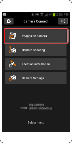 1. Touch [Images on camera ] in Camera Connect.