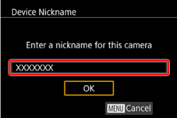 When making Wi-Fi settings for the first time, a screen will appear for you to register a nickname for the camera.