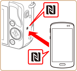 - For an NFC-compatible Android smartphone (OS version 4.0 or later), connections can be made by activating NFC and touching the smartphone against the camera.