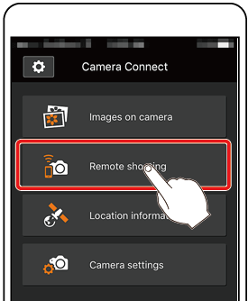 1. On the smartphone, select [Remote shooting] from the Camera Connect menu screen.
