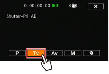 5. Touch [Tv Shutter-Pri. AE] and then set the desired shutter speed.