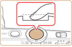 Press the shutter button lightly, halfway down. The camera beeps twice after focusing, and AF frames are displayed to indicate image areas in focus.