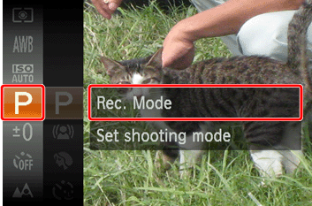 ] button repeatedly until [ P ] Mode* is displayed.* [ P ] Mode is displayed as the default mode after purchase. If the settings have been changed, the selected shooting mode will be displayed.