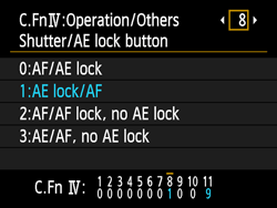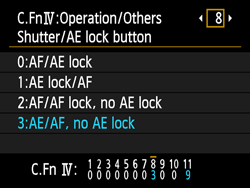 Red indexIf autofocus does not operate when the shutter button is pressed halfway, the custom function settings might have been changed as shown below.
