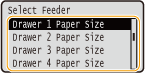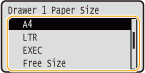 .- <Drawer 2 Paper Size> to <Drawer 4 Paper Size> are displayed when the optional paper feeder is installed.