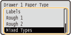 - If you frequently change sizes of paper to load, you can specify <Mixed Types>, which saves you the trouble of changing the paper type setting each time you print. However, note that the paper type specified on the printer driver is not checked before printing in this case.