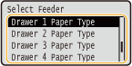 4. Select one of <Drawer 1 Paper Type> to <Drawer 4 Paper Type>, and press
