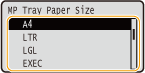 to select <MP Tray Paper Size>, and press