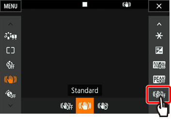 : Standard IS | Standard IS compensates for a lower degree of camcorder shake, such as when shooting while remaining stationary, and is suitable for shooting natural-looking scenes. |