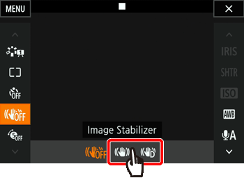 Use the image stabilizer to compensate for camcorder shake in order to achieve steadier shots. When taking photos, you can turn image stabilization on and off. When recording clips, there are 3 methods of image stabilization; select the method that best suits your needs.