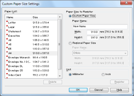 You can register original paper sizes to an application in addition to preset standard sizes for original documents. These paper sizes are "custom paper sizes".