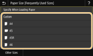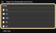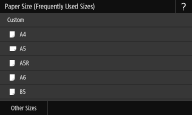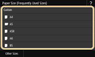 - Paper sizes that are not selected can be viewed by selecting <Other Sizes> in the paper size setting selection screen.