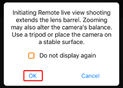 If the [Initiating Live view shooting] window appears, touch [OK].